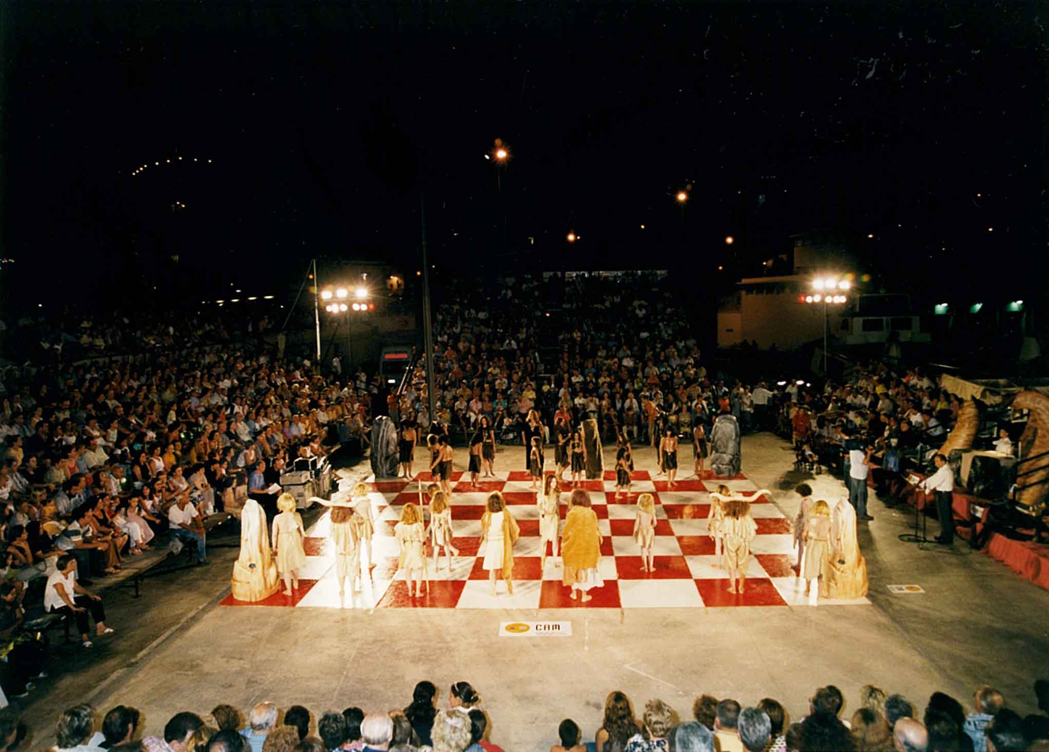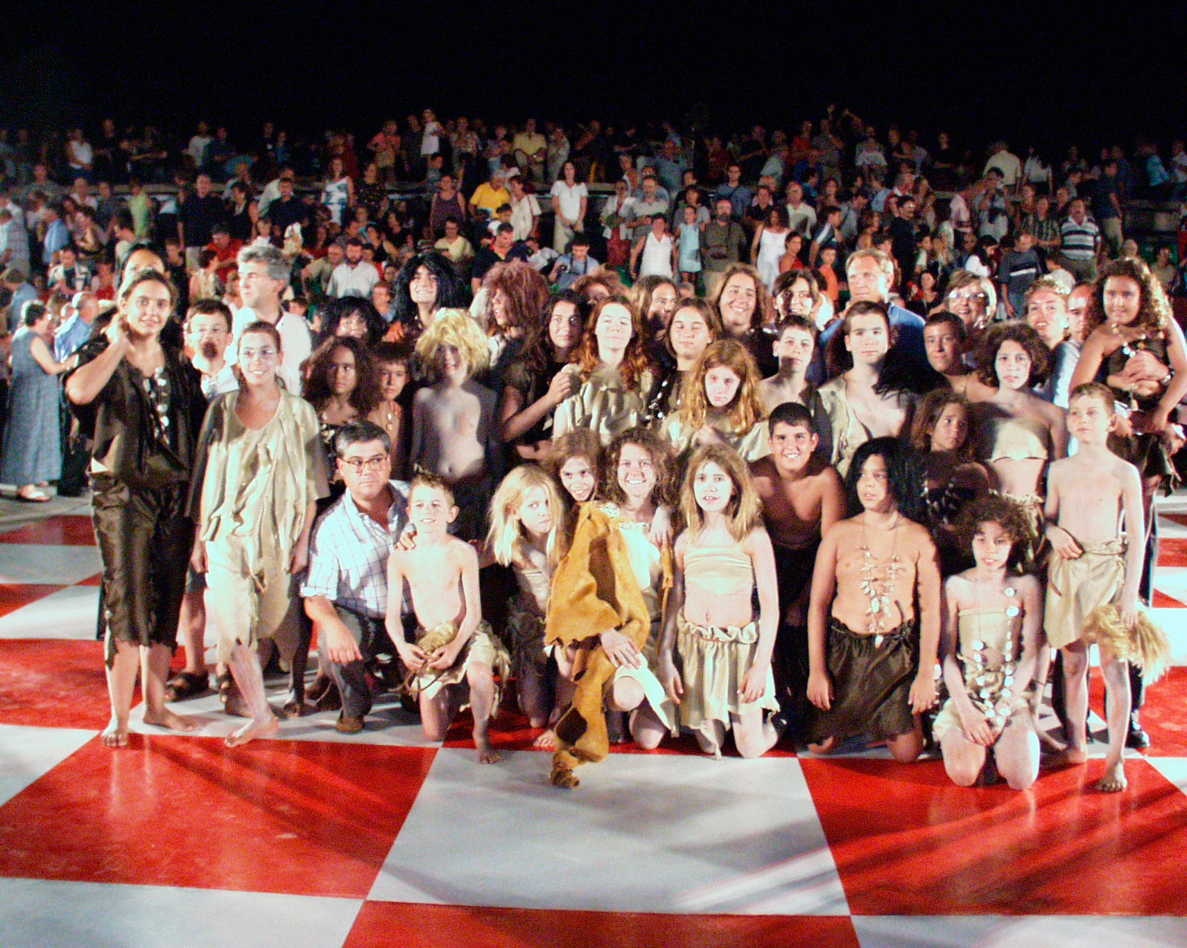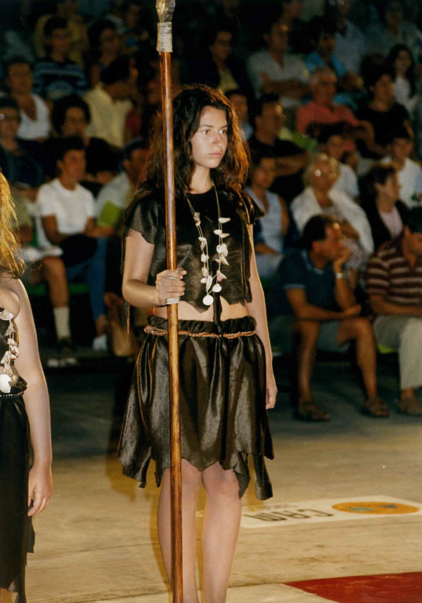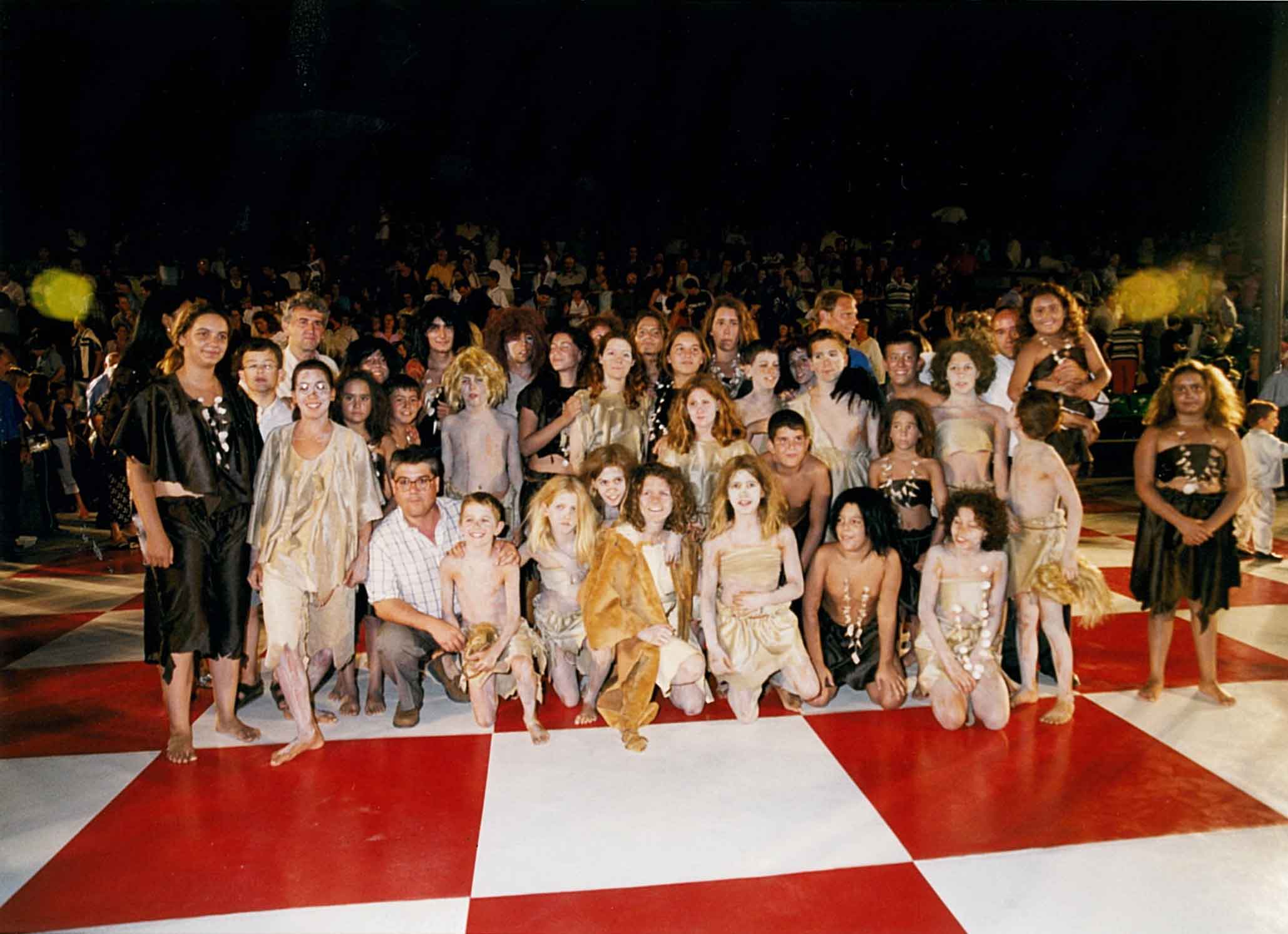 El argumento, escrito por Rafael Andarias, emocionó a todos los espectadores. Recreó el Origen del Hombre desde su aparición en Africa hace 2´5 millones de años, hasta la coexistencia en Europa de dos especies humanas distintas, los neandertales y los cromañones, centrándose parte de la historia en la Cova Foradada del Cabo de San Antonio. En definitiva, una «historia nuestra» pero con un carácter universal. Las blancas encarnaron al bando neandertal y las negras al cromañón, con un vestuario y maquillaje, preparado por Mari Ros, Rosa Miralles, Carmen Vicens, Vicenta Andrés y Mª José Cholbi, que recibió todos los elogios, al igual que la decoración del escenario de Pepa Ferrer, Pepita y Conchita Bertolín. También intervinieron como ayudantes de escena y protocolo José Cardona, Dionís Henarejos, Vicente Gavilá, Francisco Pastor, José Buigues y Gaspar Moya; como regidor y director musical José Mata; e Isabel Henarejos y Alain Vandeweghe en la dirección de escena.