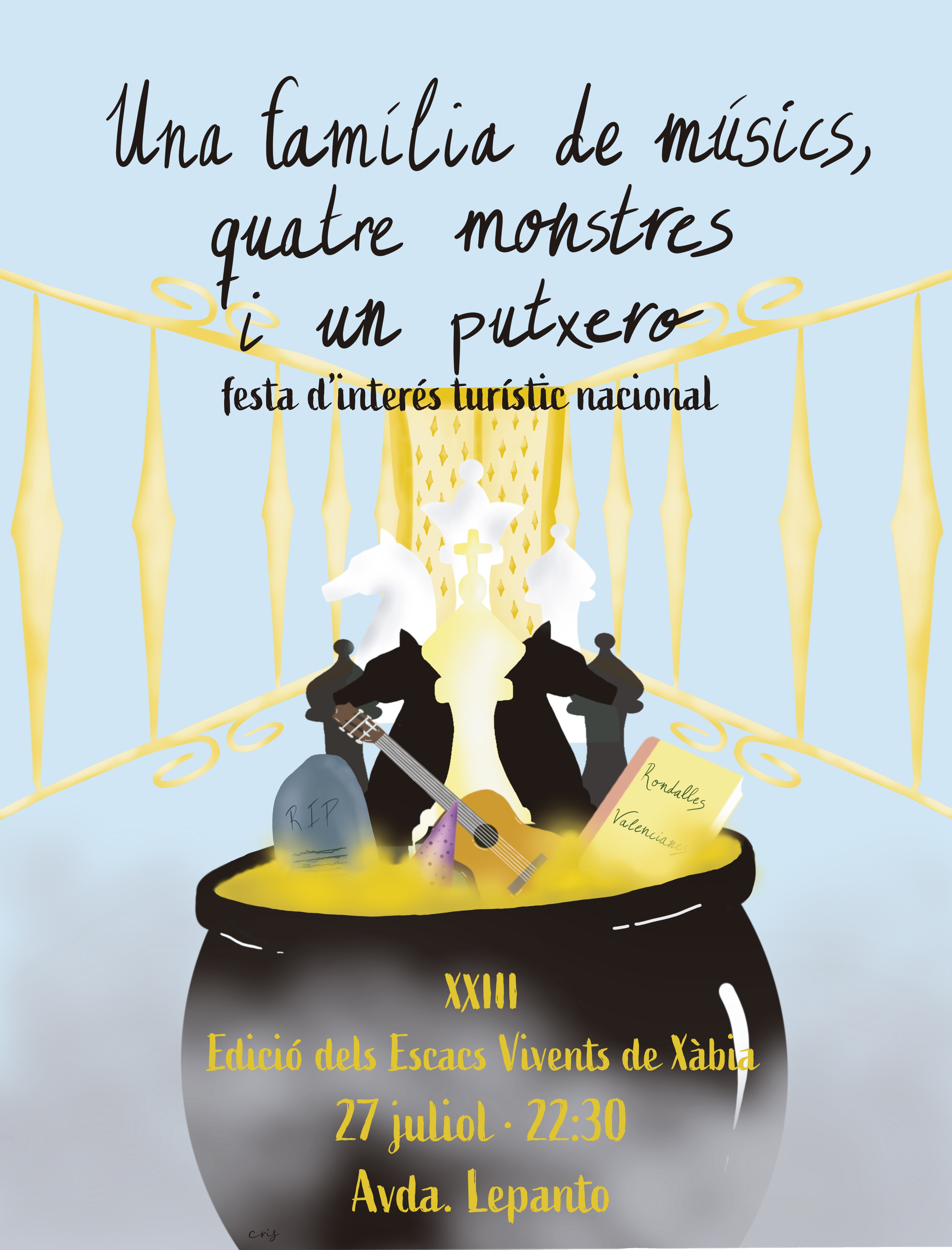 En esta vigésima tercera edición, asistimos a una obra de indudable calidad con la base de una sólida historia, excelentemente coordinada y entrelazada. Incluso, podemos afirmar — y apropiándonos de un término propio del lenguaje del guión cinematográfico— que fue escrita con un libreto de hierro. Se escenificó un argumento que, de forma sucinta, fue el siguiente: “Tras una discusión con su familia porque quiere dedicarse a la música, el protagonista, Joanet, de tan solo doce años, visitará el cielo para enseñarnos a todos una valiosa lección sobre el recuerdo y el perdón. En este camino, lleno de momentos tanto tiernos como de comedia absurda, conoceremos personajes enigmáticos como su bisabuela, famosa como todas las abuelas por sus comidas; un ángel en prácticas un poco despistado, que con su humor nos invitará a vivir la vida; cuatro monstruos olvidados de las rondallas valencianas o incluso otros más rocambolescos como una diva del pop adicta a los smoothies que nos hará reflexionar sobre el significado del arte”.